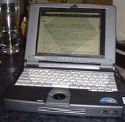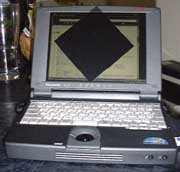 ところで、偏光フィルターがどういうものか知らない人のために、NotePCの液晶に偏光フィルターを重ねた写真を示す。