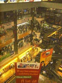 下の写真はバンコクのパンティーププラザの内部である。丸井のビルの内部をラジオ会館の店子で置換しまくったようなビルである。いや、ラジオデパートのスケールを長さで10倍、面積で100倍にしたといった方がいいだろうか。