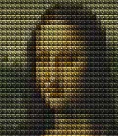 で、「モナリザ」の微笑はどうにも奥深く見えるから不思議である。その微笑の先に何があるのかを深く考えさせる。そして、その答えはなかなか見つけられない。「モナリザの微笑」を眺め考えると、その先には結局「モナリザ」しか見えてこない。答えが見えないのであると書いた。そして、画像を読み込み、その画像をその画像自身の縮小画像(48x48個)で表現するjoconde.exeを作成し、自己相似形の「モナ・リザ」を描いてみた。それが、この下のjunhirabayashi 作 48x48の「モナリザ」である。