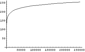 逆に明るさからRGB画像の数値データへの変換グラフは例えばこんな感じである。RGB数値で200と255と言っても実はその明るさは大違いであることがわかると思う。