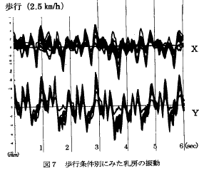 先日、素晴らしい論文(いや違う戦闘報告だ)を見つけた。それは日本人間工学会関西支部大会講演論文集Vol.2000Page. 112-115に掲載されている岡部氏らの「歩行に伴う乳房の振動分析」という報告である。内容は、