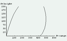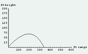 いやいや違う…、絶対に何かがオカシイ。そうだ、この地球上には空気抵抗というものがある。少なくとも通常の野球場には空気抵抗が絶対にあるハズだ。きっと、打球をバットで打った直後は音速を超えるマッハ弾なのだけれど、空気抵抗ですぐにスピードがおちてしまい、スタンドに入るまで3秒もかかっているに違いない。素直なワタシは新聞記事を信用するわけで、きっとそうであるに違いないのである。きっと、「松井のマッハ弾」の軌跡はスタンドに向かって真っ直ぐではなくて、急激にスピードが遅くなって失速したりしているに違いないのである。そこで、試しに打球の軌跡のシミュレーション(referto Matthew M. Thomas)をしてその辺りのことを調べてみることにした。