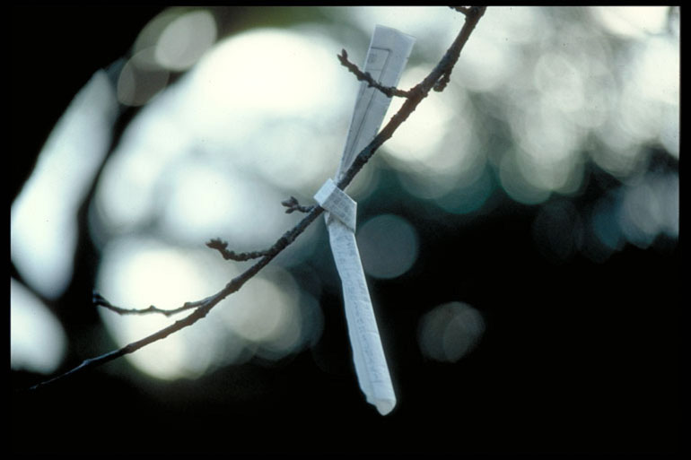 一枚目。大学の頃、京都の黒谷寺で撮った写真。好きな理由は、木に結びつけられている「おみくじ」には「誰かが選ばなかった未来」が封じ込められているような気がするから。