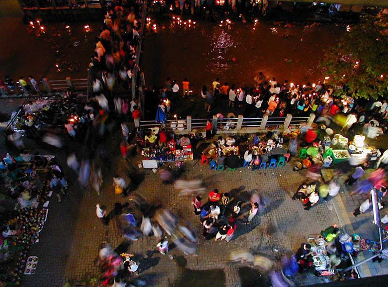 次の一枚は、タイでロイクラトンの夜に撮った写真。本当は、空に浮かぶランタンを見に行きたかったのだけれど、残念ながらその時間はなくて、川に浮かぶランタンを見に行った夜に撮った写真。好きな理由は、木に結びつけられた「おみくじ」を好きな理由とやはり少し似ている。 …誰かが川に流して、水面を流れて行くランタンには一体何が乗っているのだろうか?と気になってしまうところだろうか。それとも、川を流れていくランタンと、道の上を流れていく人がとても似て見えるところだろうか。