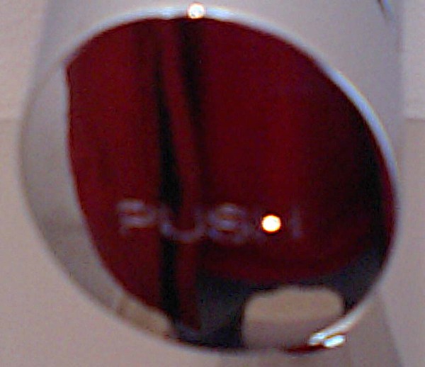 男性用小便器の水洗ボタンは、丸みを持った形状にしてはいけない、と思う。ボタンの清掃作業を考えると、平滑に越したことはない。だから、金属ボタンを綺麗に磨くことはしょうがない。つまり、鏡状になるのはしょうがない。だとしたら、男性自身が(広角が写り込むために)イヤでも見える凸面形状にするのは、少しマズイような気がする。