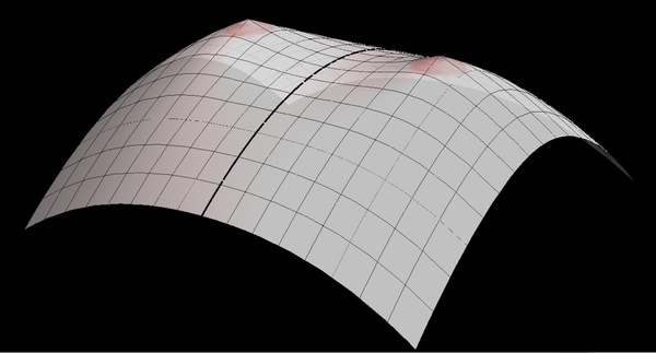 たとえば、上のおっぱい曲面を2分するように描かれた黒い線こしが、黒板の上に繰り返し眺めたはずの”y=x^2+1”という、単純で見慣れた2次曲線です。