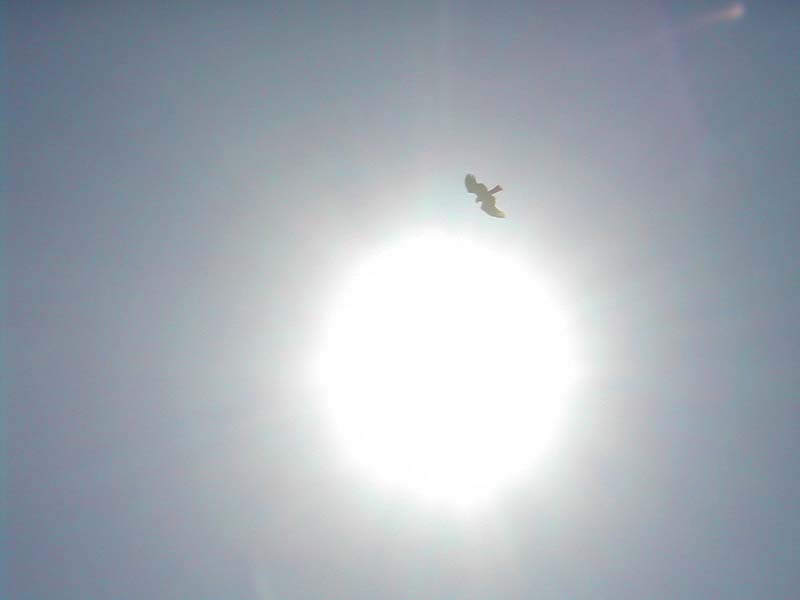 グライダーのように鳥が空で佇んでる。私から見ると太陽のすぐ近く。(リンク)