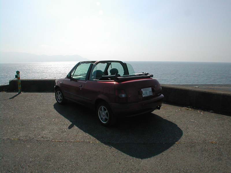 今日は暖かいのでマーチ・コンバーチブルで。車の前で休んでいると、近所の人と偶然会った。(リンク)