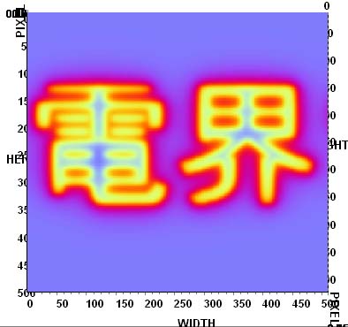 というわけで、てっとりばやく完成させた。これは電位計算後のフィルタ画像例。電界って書いてあるけど、この例では電位。なぜにPhotoshopのプラグインで?と言われそうだが、きわめてニッチな画像処理をする上ではこのPhotoshopプラグインは最高のツールになるハズなのである。