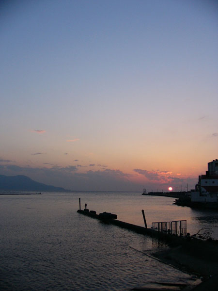 それにしても、何百回と眺めても、やはり海の近くで眺める青い空はとても綺麗だ。右の写真のような、もうすぐ日暮れという時の深い青とゴールドの空も、日が落ちる瞬間の赤い風景も、日が沈んだ後の藍色の空もどれも本当に綺麗だ。気分はもう、老後の散歩をしている夕暮れ、なのである。