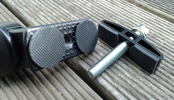 毎日使う自転車にスタンドが付いていないと・・・ちょっと不便、というわけで、センタースタンド Tranz X(JD CD-109A)を買い、GIANT Escape R3に取り付けました。千円ちょっとでセンタースタンドを買い、100円ショップで買った振動吸収ゴムパッドをスタンドに貼付けた上で、フロントディレーラーのワイヤーと干渉しないように、中央少し後ろにギシギシと固定してみました。