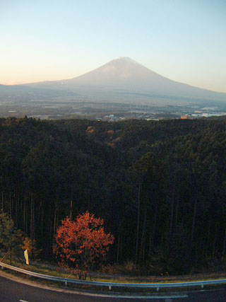 富士山の山頂を眺めてみる。さすがに12倍ズームの望遠だと富士山山頂もオペラグラスで眺めてみるよりもっと大きく見える。そして、もうすぐ夕焼け色になる間際の空を眺めると、こんな感じ。ちょっと濁って見えるのはガラス窓の向こうの景色を撮っているから。