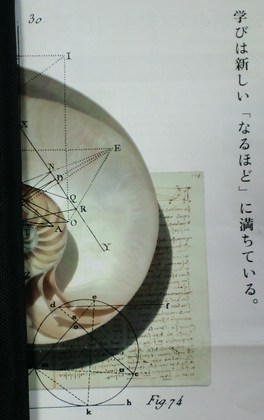 右の画像はオウムガイの殻の断面図です。これは、美的曲線である「対数螺旋」です。これは、ある予備校のポスターの一部ですが、「美しい渦巻き模様は、実は「対数らせん」という数学の公式によって表わされるそう」という素敵な言葉とともに美しい対数螺旋が描かれています。