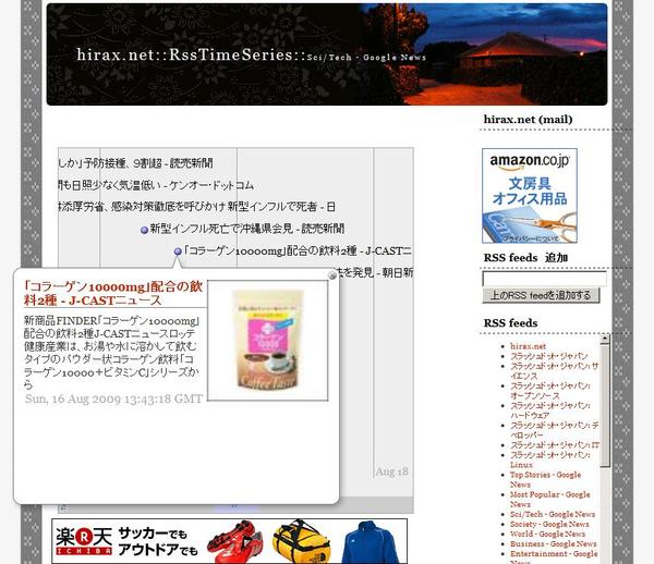 時折、hirax.net::RssTimeSeries で、2,3か月分のスラッシュドットの記事を読んだり、あるいは、腕時計やバッグの新着・ベストセラー商品を眺めたりします。