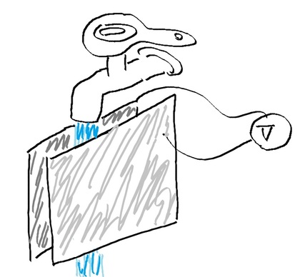 感電しないように気をつけながら、こんな水道の蛇口の前でエレキテルな実験をいつかしてみたいのです。そして、想像が見当違いだとしても、頭の中に「スッキリ」をひとつ増やしてみたいのです。