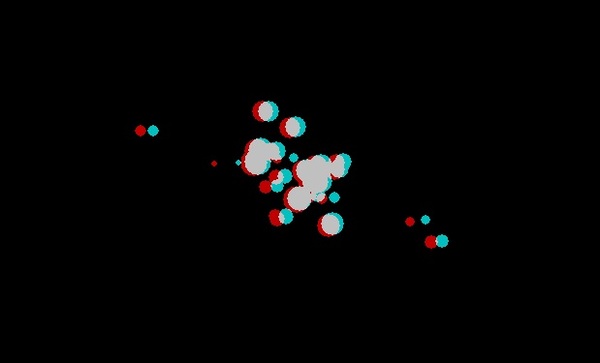その結果を、先日、作ったアナグリフ表示アプリケーションでアナグリフ立体動画にしてみた結果が、下に張り付けた動画になります。ムービーキャプチャーはいつものようにカクカクしてしまっていますが、もちろん、本当は、とても滑らかに動いています。というわけで、今日は「エクセルで飛び出す"立体"粒子群アニメーション」を作ってみました。
