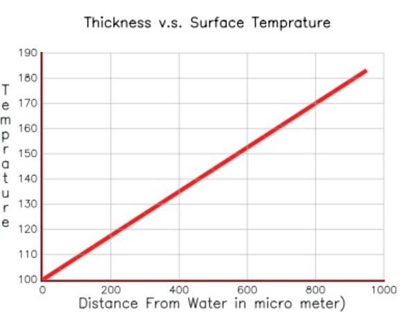 その計算結果は、水風船を800℃の炎で熱し始めると、10秒後には水風船のゴムの外側は60℃で、水風船のゴムの内側は50℃になる、という結果でした。つまり、「ライターの炎で水風船を10秒あぶったとき」には、水風船は温かくなるけれども、風船が割れたりはしない、という結果でした。そして、ライターの炎で水風船を40秒あぶると、水風船ゴムの外側は120℃になり、ゴム内側に接している水部分は100℃に達する、という具合です。