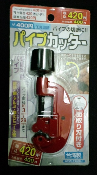 パイプカッターは税込420円ナリです。500円玉を手渡して買ったパイプカッターですが、次にまた使う機会が訪れるのかはわかりません。