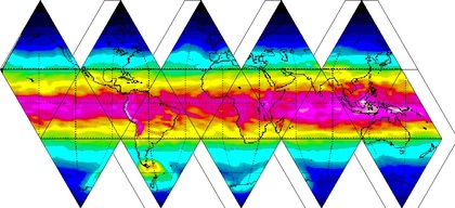 というわけで、UVインデックスの世界地図から作り上げた「UVインデックス地球儀用"正二十面体の展開図"」の一例が下図になります。