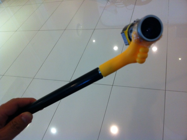 そこで、次は「伸縮棒」の先にWifiカメラを取り付けて、棒の先のカメラからの簡易空撮・リモート撮影をしてみました。1メートル弱の棒の先から眺める景色(右画像)は、意外なほどに(いつも眺める景色とは)違うようすに見えます。