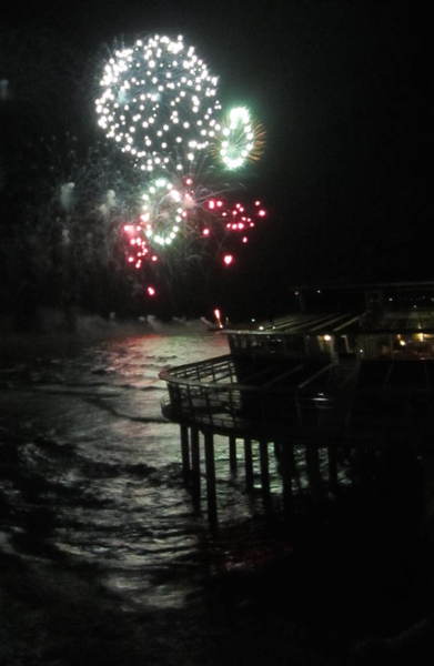方向的には、この花火の先、海の向こう150kmくらい先に、イギリスがあるはずだ。…といっても、地球は丸いから、いくら障害物が無かったとしても4kmくらい先までしか見通すことはできない。
