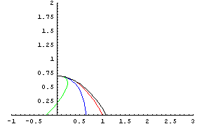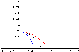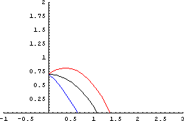 下左のグラフは「銃筒」を水平撃ちする歳の「しょんべん」の初速と、その場合の「しょんべん」の軌跡である。「銃筒」から「しょんべん」が秒速2,3,4mで飛び出すときの「しょんべん」の軌跡を計算してみたモノだ。縦軸が鉛直軸、横軸は立っている場所を0とした時の水平距離を示している。単位はいずれもメートルである。ショーという感じで放水中の立ちションの様子がよく判ると思う。「しょんべん」を放つ「銃筒」の高さは70cmとちょっと低めにしてしまったが、普通もう少し高い場所にあるのが自然だろう。