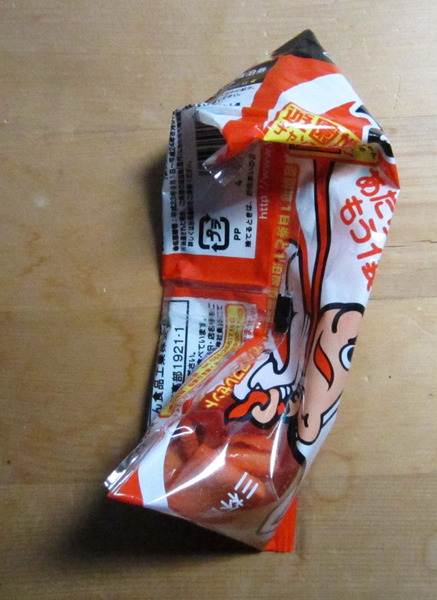 よっちゃんイカのアタリ・ハズレを袋を開けずに見る方法 で、「(特殊な配置で)よっちゃんイカの袋を光にかざすと(左の写真のように)アタリ・ハズレが見えてくる」と書きました。つまり、それを逆に言えば、ただ普通に光にかざしてみただけでは、アタリ・ハズレを透かし見ることはできない、ということです。そこには、意外に興味深いアタリ・ハズレを丸見えにしないための工夫が隠されています。