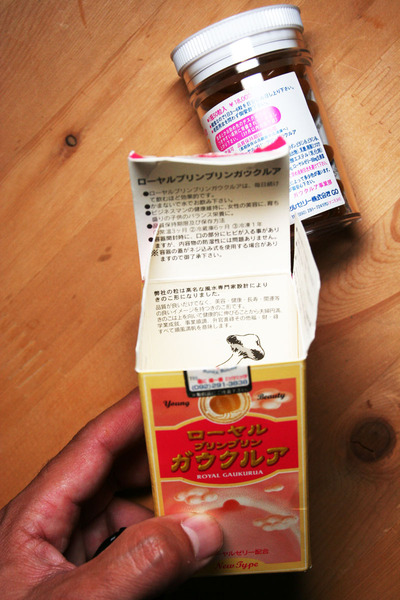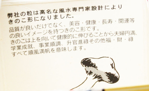 ローヤル ブリンブリン ガウクリアの粒は「風水専門家設計によるきのこ形」で、品質だけでなく、学業・事業などすべて良くなるイメージを持つ、という。瓶1本のお値段が「(少なくとも印刷されている価格では)一万八千円なり」なので、材料・加工法の売り向上だけでなく、そんな超科学的エッセンスも詰め合わされているのが楽しい。