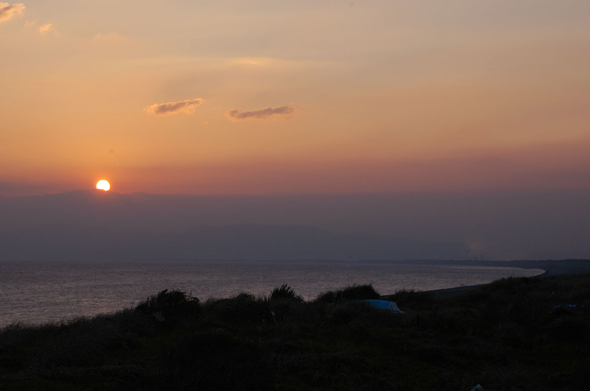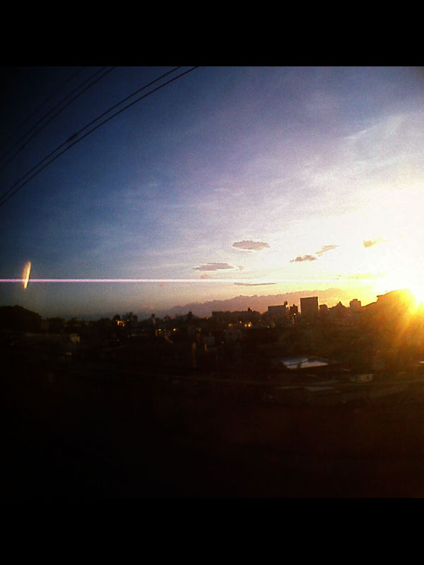 二日酔いなので、朝の三島駅では暑さがキツイ。帰りの新幹線に乗る頃は暑さも少しおさまっている。新横浜近くから夕焼けの景色を撮ってみる。太陽を入れるとスミアが出る。夕焼けの太陽を入れた写真が好きな私には、Nikon D70よりもCanon EOS 20Dの方が良いのかも。