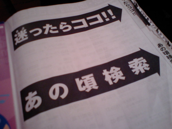そういえば、カラオケ・ボックスに行くと、リモコンのメニューには「あの頃検索」といったものが表示されているのが普通になりました。しかも、そんな「あの頃検索」の前には、「迷った時の」なんていうキャッチフレーズまで付いています。それは、何だか「とりあえずビール」の「とりあえず」と同じような優柔不断と迷いの感があります。