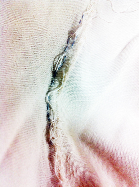 広げた手の幅による計測結果は、「ズボンが12.5cm ほど破れた」と告げています…。うぅ、これは非常にまずい状態です。デブ専・老け専なガチホモの方、つまり非常にニッチな方には喜んで頂けるかもしれませんが、ほとんどの人は目を背けたくなるに違いない”猥褻物陳列罪状態”になっています…。