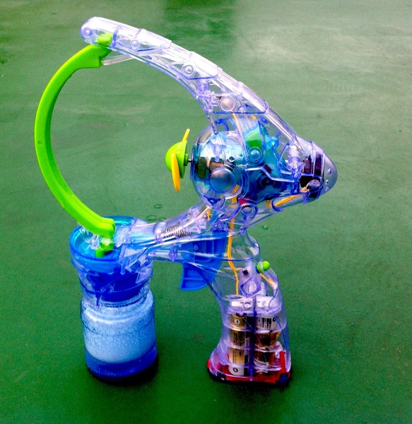 しゃぼんパレードというシャボン玉連射マシーンを買いました(『「シャボン玉マシンガン」で「世界で一番熱い夏」』)。このしゃぼんパレードは、シャボン液タンクからポンプでシャボン液をシャボン玉製造・発射部に供給することで、「ファンの前に回転ユニットがあり、シャボン液をまき散らす」「シャボン液貯めからシャボン液がこぼれがち」といった問題が発生しない、優れものです。