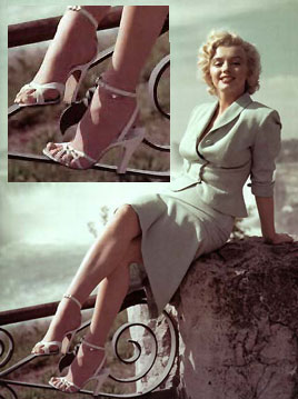 <モンローウォーク/「ナイアガラ」ヒールの秘密>何と、マリリン・モンローはンローウォークのために右のヒールの高さを左のヒールより低くしていた、というのである。"Herfamous sexy walk was said to be aided by wearing very high-heeled shoes,with one heel a quarter-inch lower than the other"とか"shesawed a quarter-inch off the right heel of all her shoes to create thatswivel-hipped walk"という風に、どうやらその話は有名な話らしい。1/4インチだから、6mm程度マリリン・モンローの右のヒールは左より低い、というわけか。しかもそれは、先の「ナイアガラ」の歩くシーンを眺めれば確認することができる、というのである。スクリーンで見るモンローの魅力のひとつにモンローウォークがあります。ちょっと赤ちゃんみたいにヨチヨチ歩く感じ。それとボディのきれいなラインと豊かなバストがちょっと揺れるアンバランス感が魅力的な歩き方。「ナイアガラ」のワンシーンで、永遠とつづく道を歩いていく後姿のロングショットで、よく見るとハイヒールの高さが左右ちょっとちがうんです。どっちかが擦り減ってるとかじゃなくて、ちゃんと演出されているんだと思うんです。だから、靴の片方にだけ中敷をいれればモンローウォークの真似ができると思いますよ。