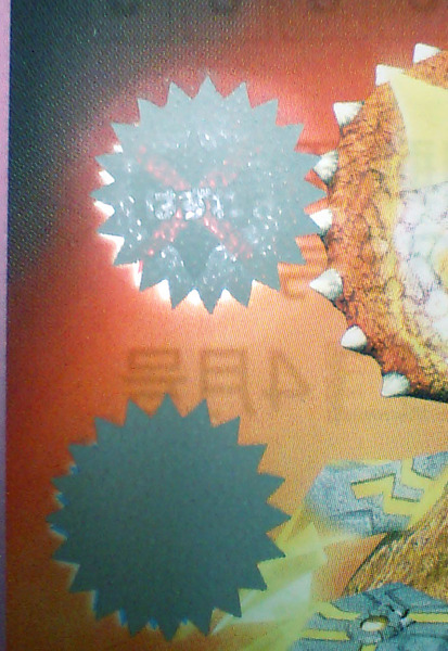 また、右の画像は、恐竜キング の場合である。やはり「(あたりを示す)ディノテクターのイラスト」と「はずれ ×」の違いを明瞭に見て取ることができている。それは、他の2つの たまごっち / ポケモン クイズでも同じである。
