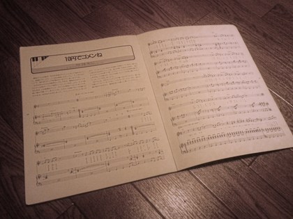 」のピアノ譜が出てきた。電話の「ベル」の音がドラム代わりに曲始まりを奏でる「10円でゴメンね」を聴きながら、技術が進歩して文化が変わっていくと、歌詞の意味がわからなくなってしまうものだ、と実感させられた。