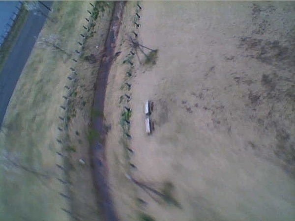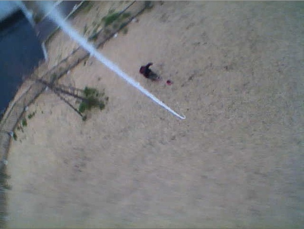 そんな凧にぶら下げたWifiカメラから見た景色を手元のiPad miniで眺め・撮影した動画から、適当に下界を見下ろす風景を抜き出したのが下の数枚の写真です。1、2枚目の糸を持ち・上を見上げているのは、もちろん私です。