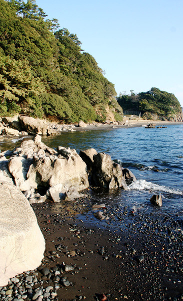 大山巌たちが海を眺めた別荘跡、彼らが歩いた石垣や階段跡を散策することができる。三方を急峻な山に囲まれ、残りは海が広がり、そして現在は誰もいない場所は不思議な空間そのものだ。