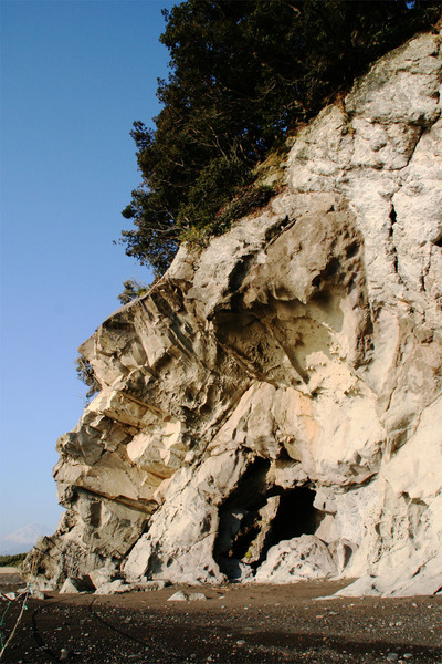 しかし、干潮時に牛臥山の崖下に行くと、その岸壁の足下に浜が現れる。