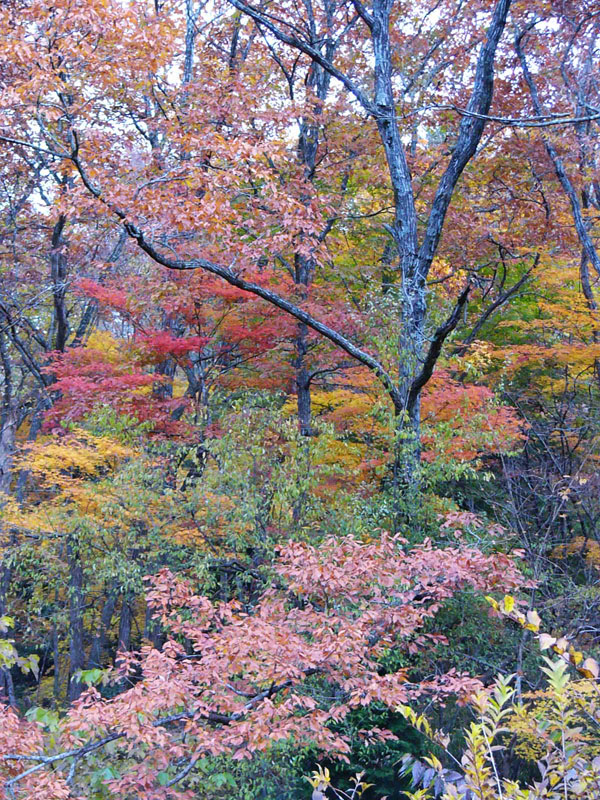 で、気づくと足柄IC近くの林の中。そこで上を眺めると、眺めた赤い木の実顔をところどころで顔をほんの少しづつ出している。周りは人気がなさそな別荘ばかりだけど、ところどころ湯気が上がっている家もある。きっと、仙人のように暮らしている人もいるんだろう。