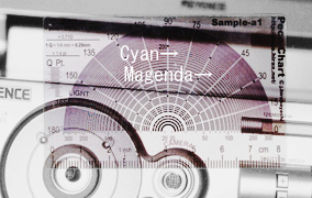 つまり、「このカタログはシアンは75°の角度方向に1インチ辺り175個のドットが並べられていて、マゼンダのドットは45°の角度方向に並べられている」、ということを、このPeco-Chartを重ねて置いてみさえすればたちどころに知ることができるのである。