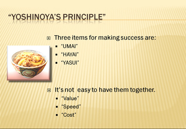 「吉野家の公理」と「吉野家のパラドクス」で書いたように、「旨い・安い・早い」を兼ね備えたものは必ず売れる。しかし、その3つをすべて持つものはほとんどない。だから、実際の商品は「旨い・安い・早い」のうち、少なくとも1つ、できれば2つを備えたものになる。