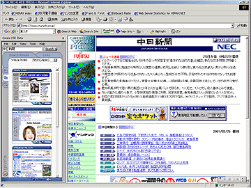 以前、「WEBページを検索した時、その検索結果を小さな画像(サムネイル)で表示してくれるのって便利だと思わない?(というかやってみない?)」とアドバイスされたことがあった。目的のキーワードで検索をかけた結果が一覧で表示されても、そのテキストのみの結果からは全然イメージが湧かない、というのである。なるほどなぁ、と私は思いながらも、その「WEBページの検索結果をサムネイル表示する」というアイデアを簡単に実現するにはどうしたら良いかがなかなか思いつかなかった。どこかの検索エンジンを利用して検索を行って、その結果に対してさらにサムネイル表示を加えてみようなどとも挑戦してみたのだが、サムネイル表示のために利用しようとしたThumbnailsViewのThumbCtlを使ったプログラムが何故かWindows2000上では上手く動作しなかったりして、なかなか進まないままだった。