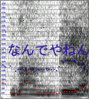 それに対して、関西弁ビギナーの「なんでやねん。」を示してみるちゅうわけや。彼の場合は自然な「上昇と下降」を発音することができておらへん。