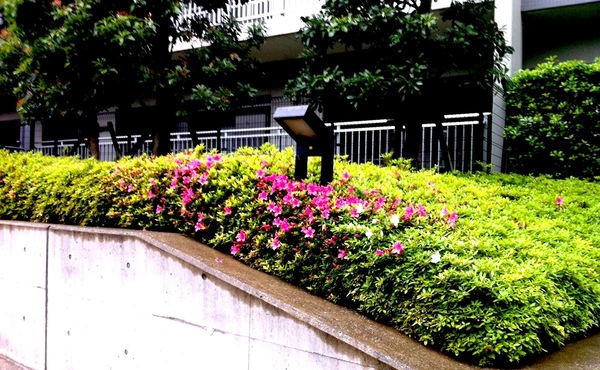 都会にある植え込みには、ツツジが植えられていることも多いように思います(たとえば、上に貼り付けた写真は今日眺めた”マンション前の植え込みの写真”です。照明灯のある場所だけツツジが咲いていることがわかることと思います)。もしも、早く咲くツツジを見たときには、その周りを眺めてみると、生命のメカニズムを実感することができるかもしれません。植え込みの照明灯近くには、きっと綺麗に花が咲いているはずです。そして、そんな因果関係で動かされる世界に気づくのです。