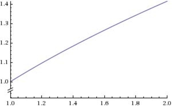「体重が何倍になれば(横軸)何倍汗っかきになるか(縦軸)」を描いてみたのが右のグラフです。つまりは、「汗のかきやすさは体重のルートに比例する」という「汗っかきの方程式」を単純な場合で眺めた結果例になります。
