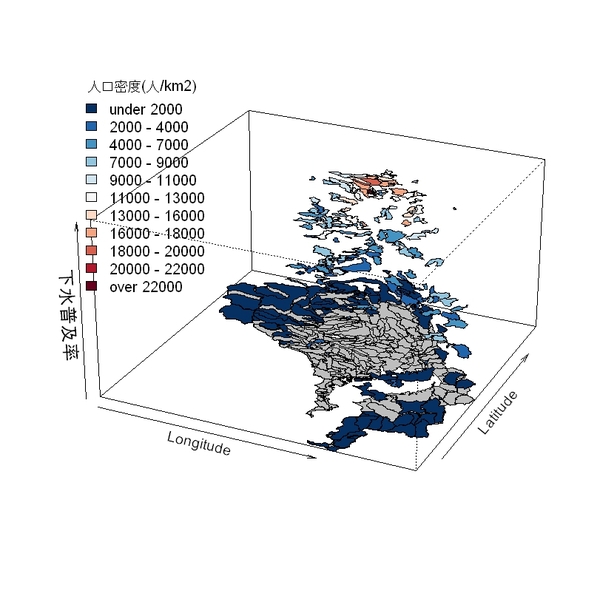 関東近郊の「下水普及率」を地図上に人口密度とともに可視化したグラフを見ました。こういった普段見慣れない形式のグラフは、まるで興味深いミステリーのようで、眺めるだけでも何だか面白く感じます。(データ元:多次元データの視覚化)