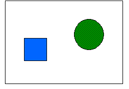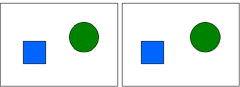 例えば、下の画像のように青色の□を右へずらしてやり、これを左目用の画像に使えば、立体感を得ることができる。