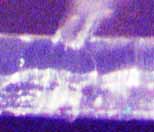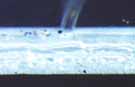 参考までに、「ノイズが無い場合」の録音溝の断面を撮影したものが次の写真である。写真では判りにくいと思うが、録音溝は中央部がえぐれ、その周囲が盛り上がっている。