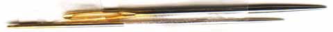 実はこの針先というものは、あまり鋭くないことがわかる。「付属していた針」も「送って頂いた針」の方も針先は実は平らになっているのだ。もしかしたら、繊維の中に針を通す時には、あまり針先は鋭くない方が実は良いのかもしれない(実はK氏のアイデア)。例えば、繊維の隙間に針を通すようにするために、針先をわざと丸めているなどの理由があるのではないだろうか?木の繊維にそって曲がっていく釘があるように、この針先も繊維を避けながら進むために先を丸めていたりはしないのだろうか?