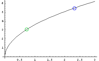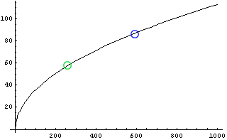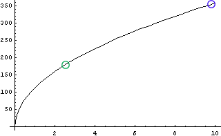 というような形になる(計算が合ってれば…)。これに、地球の半径R = 6400kmを代入してやれば、視点の高さYに応じた地平線までの距離が求められるわけだ。